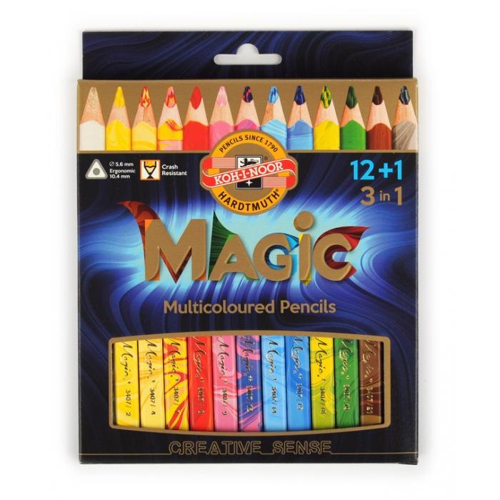 Sada pastelek a jedné tužky Blender. Silné lakované trojboké tužky s tříbarevným jádrem. Barevné efekty. Blender - bezbarvá tužka pro mixování barev, zjemnění a spojení. Při kreslení na strukturovaný papír vybarví bílá místa.