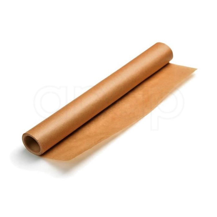 Hnědý balící papír na balení potravin - masa, uzenin.... Nepromastitelný, odolává vodě. Hlavní surovinou při výrobě je buničina. Pergamenová náhrada má atest pro styk s potravinami.