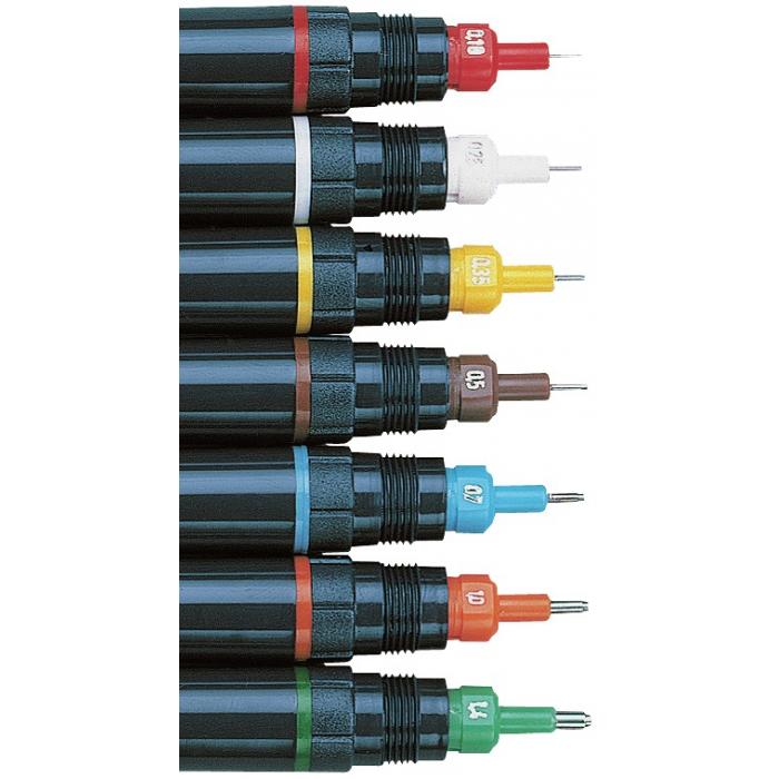 Vynikající mechanická tužka pro psaní a kreslení, šířka čáry. Tužka je vybavená dvojím mechanismem: měkkým a tvrdým. Měkký slouží k amortizaci hrotu při psaní a tvrdý zajišťuje upevnění hrotu v krytu během kreslení. Ergonomická oblast úchopu je vyrobena z kovu. Okénko tvrdosti hrotu lze nastavit dle potřeby. Vybavena dlouhou pryží...