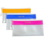 Transparentní desky z PVC s barevným zipem. Kapsa na vizitku. Vhodné na dokumenty a drobné předměty. Mix barev. Barvu dodáme podle skladových zásob.
