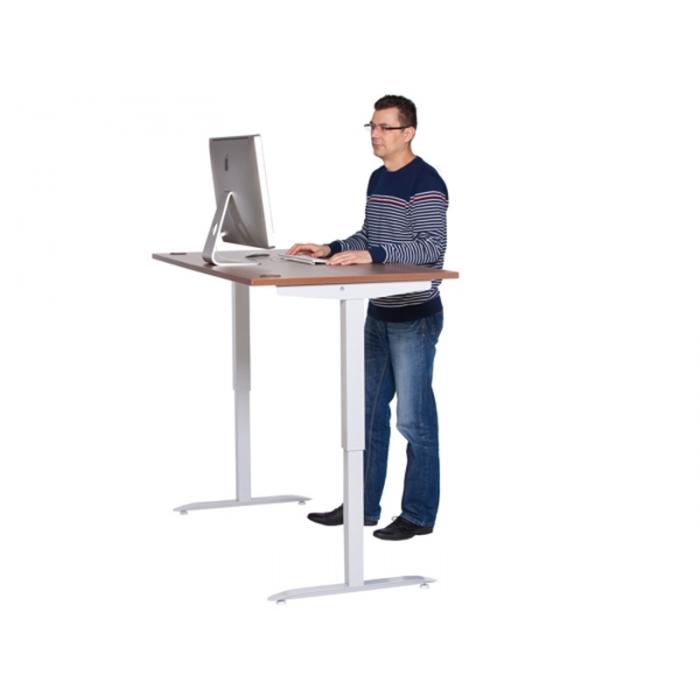 Elektricky stavitelný stůl, délka 160 cm, ODSTÍN DŘEVA DLE VÝBĚRU, podnož šedá. Výškově stavitelný, 3 segmenty- kancelářský stůl - plynule elektricky nastavitelná výška, dokonale pevné podnoží i v nejvyšší poloze.