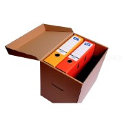 Archivační box-krabice z 3-vrstvé vlnité lepenky. Určen pro ukládání dokumentů v odkládacích mapách nebo spisových deskách. Možnost uložit 3 ks pořadačů se hřbetem 8cm nebo 4 ks pořadačů se hřbetem 5cm. Otevírání shora, přehledné popisování, manipulační otvory. Dodává se v rozloženém stavu.