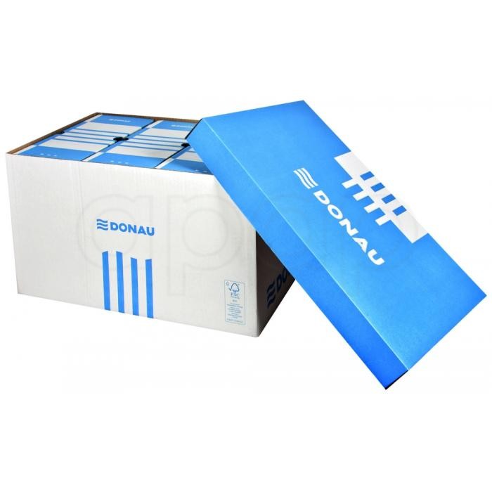 Přenosný archivační box s víkem. Vyroben z třívrstvé vlnité lepenky - gramáž cca 510g/m2. Vhodný pro dlouhodobou archivaci a skladování dokumentů. Rychlá a hospodárná archivace. Pevné otvory pro uchopení a přenášení plného boxu. Možnost uložit 6 ks archivačních boxů Donau se hřbetem 8cm, nebo magazin boxů. Případně 4 ks archivačních boxů Donau se hřbetem 12cm. Možnost popisu. Dodává se v rozloženém stavu bez archivačních boxů. Snadné sestavení.