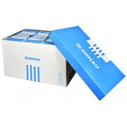 Papírová archivační krabice s modrým potiskem. Vhodná pro výraznější odlišení dokumentů. Třívrstvá vlnitá lepenka. Může stát na delší i kratší straně. Dodává se v rozloženém stavu. Snadné sestavení.