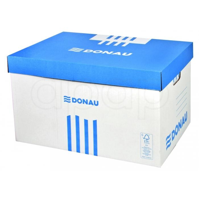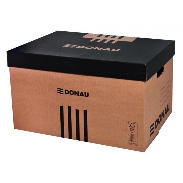 Přenosný archivační box s víkem. Vyroben z třívrstvé vlnité lepenky - gramáž cca 510g/m2. Vhodný pro dlouhodobou archivaci a skladování dokumentů. Rychlá a hospodárná archivace. Pevné otvory pro uchopení a přenášení plného boxu. Možnost uložit 6 ks archivačních boxů Donau se hřbetem 8cm, nebo magazin boxů. Případně 4 ks archivačních boxů Donau se hřbetem 12cm. Možnost popisu. Dodává se v rozloženém stavu bez archivačních boxů. Snadné sestavení.