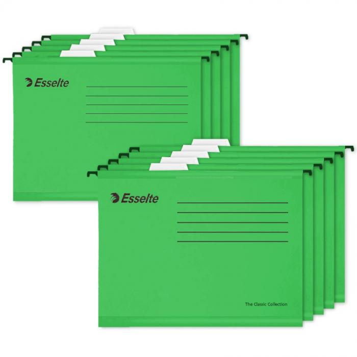 Závěsné papírové zakládací desky. Lisované dno umožňuje zvýšit kapacitu až na 3 cm. Součástí desek je plastový rozlišovač s vyměnitelným papírovým štítkem. Rozlišovač je možné upevnit v 9 různých pozicích.