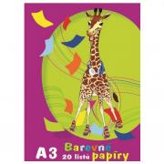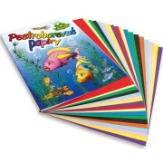 Barevné lepící papíry. Při práci s lepicími papíry nepotřebujete žádná lepidla, stačí jen trošku navlhčit vodou. Barva oranžová, bílá, červená, žlutá, zelená, hnědá, modrá a černá.