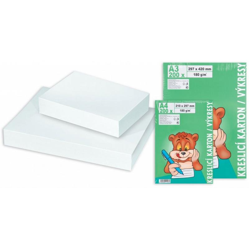 Kreslící karton - jednotlivé archy, které jsou díky vyšší plošné hmotnosti vhodné pro suché i mokré grafické techniky.