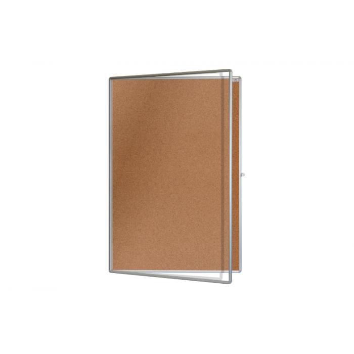 Vitrína s hliníkovým rámem a horizontálním otevíráním. Je určena pro vnitřní použití. Výplní vitríny je korková tabule.
