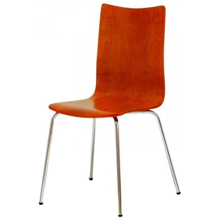 Překližková židle atraktivního designu do jídelen a konferenčních místností. Sedák i opěrák z lakované překližky. Pevná konstrukce s povrchovou úpravou chrom nebo hliník.