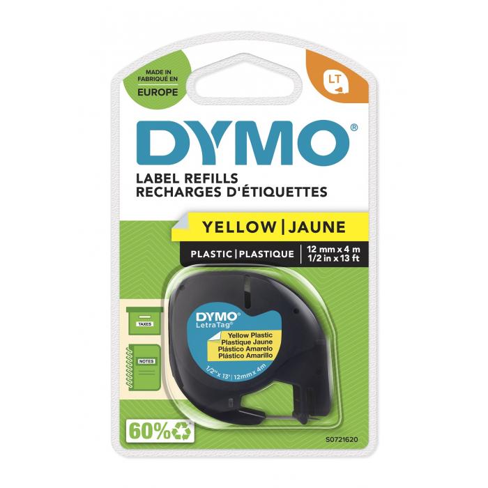 Samolepící polyesterové pásky odolné vůči oděru, vodě i vysoké teplotě. Dymo originální páska do tiskárny štítků, Dymo černý tisk/žlutý podklad.
