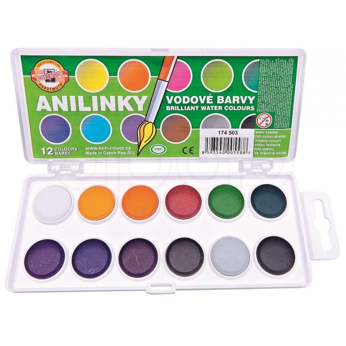 Barvy vodové anilinové Brilant 12 barev Koh-i-Noor