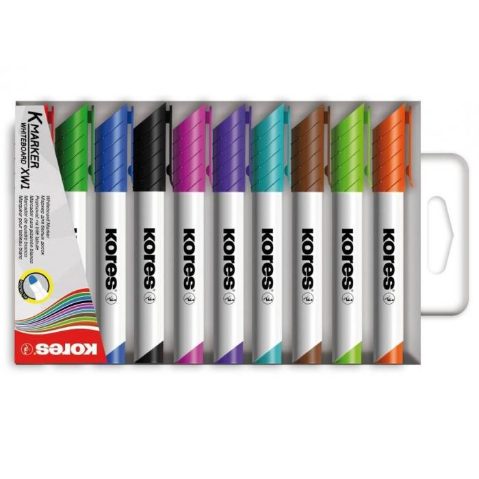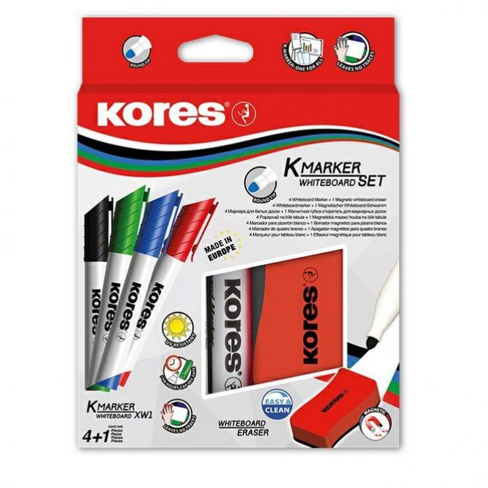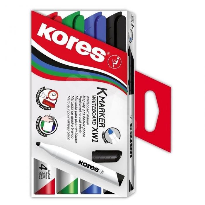 Kores na bílé tabule. Popisovače na bílé tabule ve 4 základních barvách. Za sucha stíratelné. Barva černá.